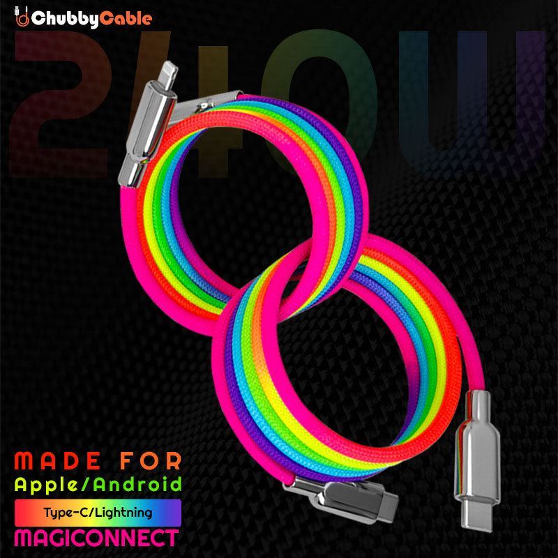 ChubbyCable MagSnap Neon- Magnetic 240W Easy-Pack Charge Cable